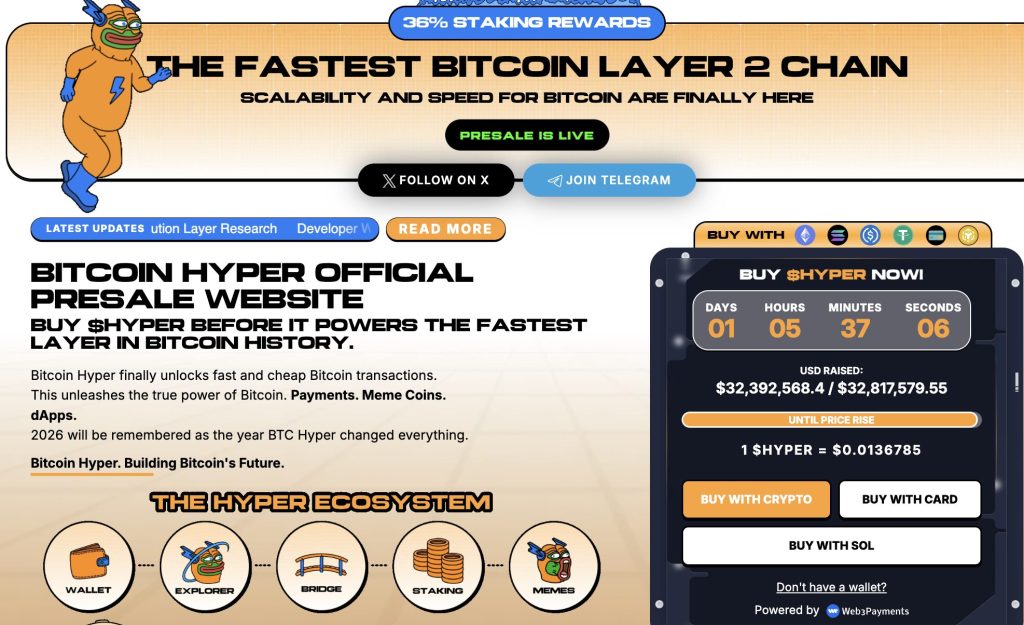 Bitcoin Hyper (HYPER) is currently in presale at $0.0136785, having raised $32,391,394.77, a figure that signals genuine demand, not manufactured momentum.